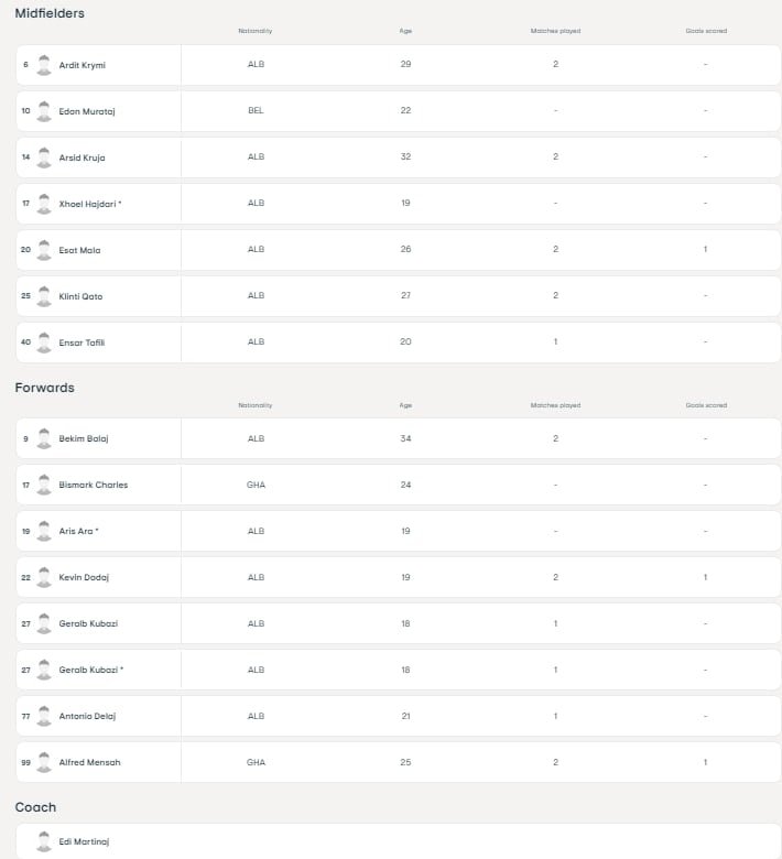 Ajo që bie në sy është prezenca e Artan Jazxhi në listë. Mbrojtësi është larguar nga shkodranët dhe është rikthyer te Teuta.