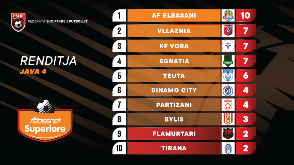 Java e katërt e “Abissnet Superiore” u mbyll mbrëmjen e sotme me ndeshjen Teuta – Vllaznia. Kjo ndeshje përfundoi në barazim 1-1.