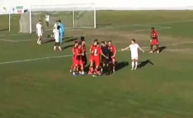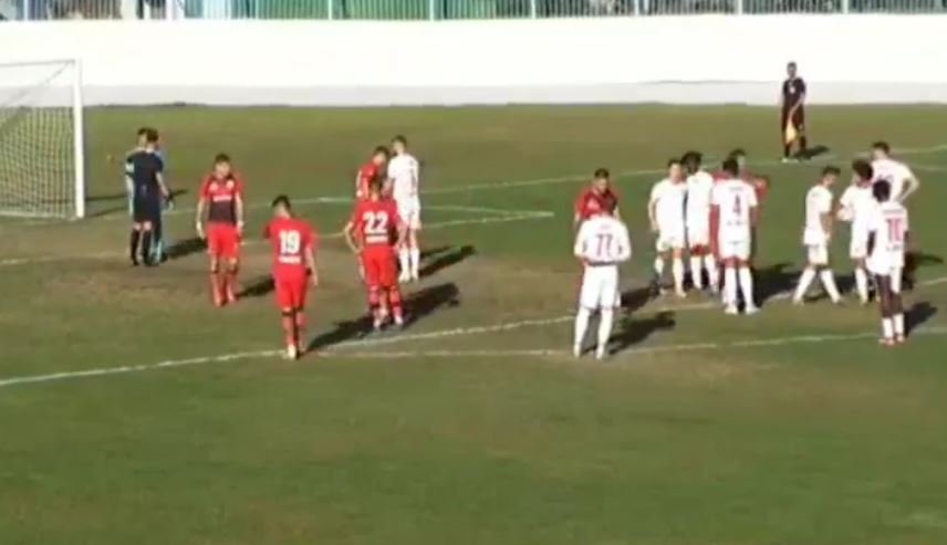 Në shenjë proteste, lojtarët e Kastriotit u larguan nga fusha. Pas 5 minutash, u rikthyen sërish.