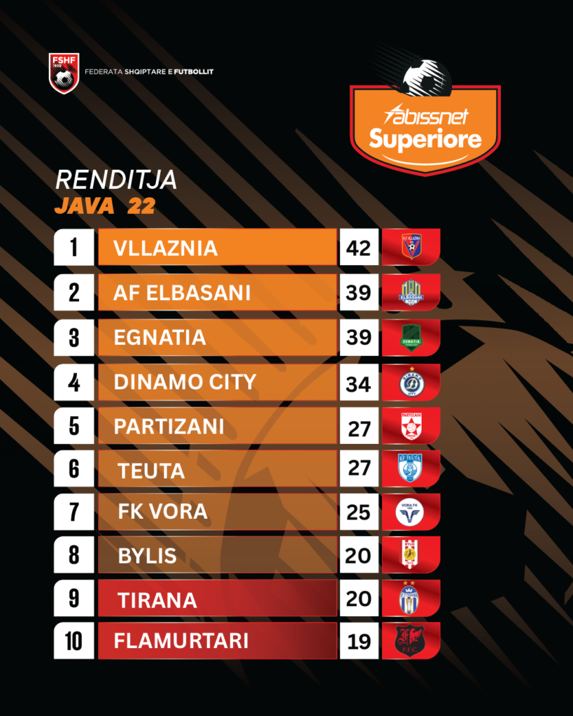 Java e 22-të e kampionatit “Abissnet Superiore” u mbyll me dy fitore të rëndësishme në transfertë, teksa Vllaznia dhe Tirana dolën triumfuese në sfidat e së dielës.