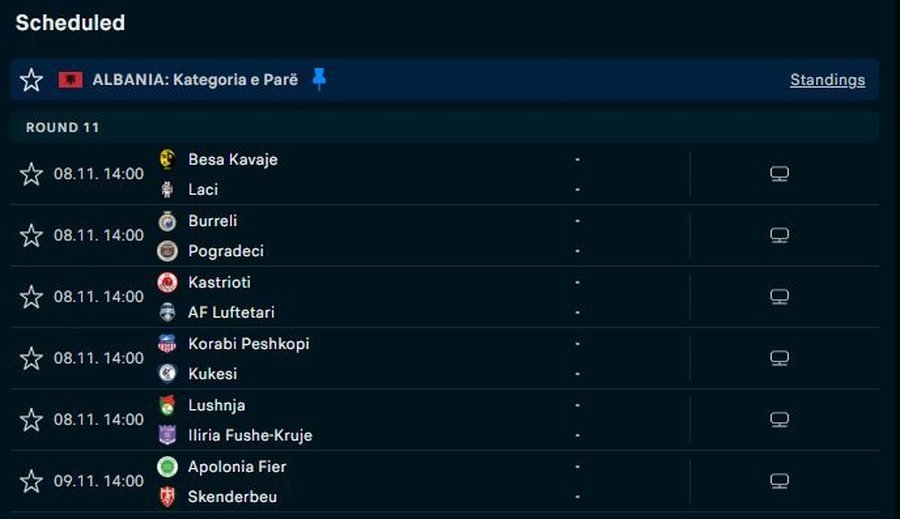 Kështu të shtunën do të përballen mes tyre Besa – Laçi, Burreli – Pogradeci dhe Kastrioti – Luftëtari. Interesante do të jenë edhe duelet Korabi – Kukësi dhe Lushnja – Iliria.