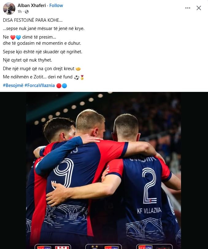 Përmes një postimi në rrjetet sociale, Xhaferri ka thumbuar rivalët e Elbasanit, duke u kujtuar se “disa festojnë para kohe sepse nuk janë mësuar të jenë në krye”.