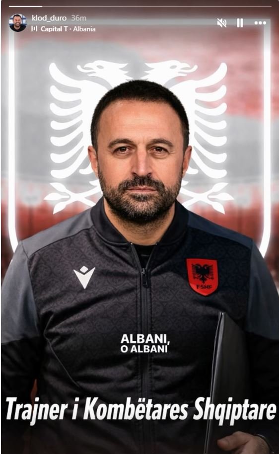 Përmes një postimi në rrjetet sociale, ku ka përdorur një imazh të krijuar me inteligjencë artificiale që e paraqet si trajner të Shqipërisë, Duro ka dhënë një sinjal të drejtpërdrejtë drejt FSHF-së.