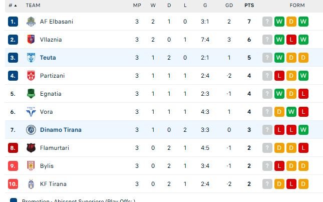 Sa i përket renditjes, Teuta ngjitet në vendin e tretë me 5 pikë, 1 më pak se Vllaznia dhe 2 më pak se Elbasani kryesues.