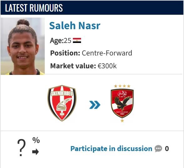 Sulmuesi i Skënderbeut, Saleh Nasr, mund të bëjë një hap të madh në karrierën e tij, teksa së fundmi ka përfunduar në “radarët” e klubit prestigjioz të Al Ahly që militon elitën e futbollit egjiptian, dhe ka fituar plot 112 trofe.